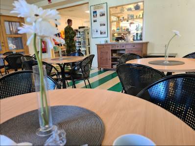 Detta kafe är ett lungt ro fylld plats med mycket och litet smörgåsar bullar kakor med mera mycket trevlig personal man kan även köpa militär kläder och skor m.m här rekomenderar detta trevliga kafe öppet till 21