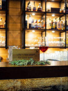 Baaritiskillä oli luukku, josta saunojat tilasivat juomia. He näkyivät suoraan ravintolan puolelle ja se vei hieman tunnelmaa ravintolasta.
